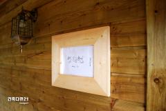 [사진]온돌구들 목구조 황토방 방갈로 벽부등과 청다헌 현판 - 1000x669