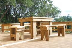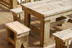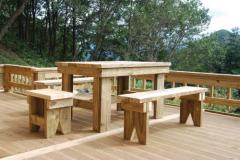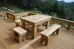 [사진]온돌구들 황토방 방갈로 청다헌 데크위의 방부목 야외테이블
