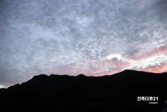 온돌 황토방 시공현장에서 바라본 금수산 저녁노을 풍경 - 건축다큐21
