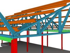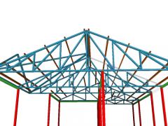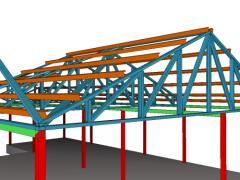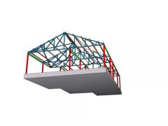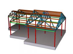 건축다큐21에서 시공 중인 영월 경량철골조 조립식주택 형강골조 구조설계 3D이미지이다. C형강과 사각형강으로 구성되는 경량철골조 조립식주택의 형강골조는 정밀하게 시공되어 주택의 구조적안정성을 보장합니다.