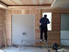영월 전원주택 거실부는 우물천장과 향목루바로 마감되었다. 오랜만에 건축다큐21 건축현장에서 제천 박목수님 만나서 즐겁게 작업한 내장공사 현장이다.