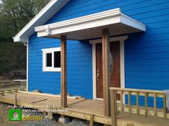 영월 경량철골조 조립식 농가주택 들골하우스 쉐이드 현관지붕과 방부목 데크시공 현장이다. 시멘트사이딩은 코발트블루 수성페인트를 칠했다. 영월 고목수와 함께 현관지붕을 만들고 데크시공 할 때 컨디션이 안좋아 하루는 조기퇴근했던 현장이기도 하다^^